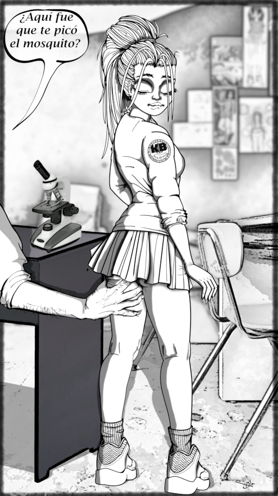Con 2 pervertidos que realizaban reparaciones en el laboratorio.