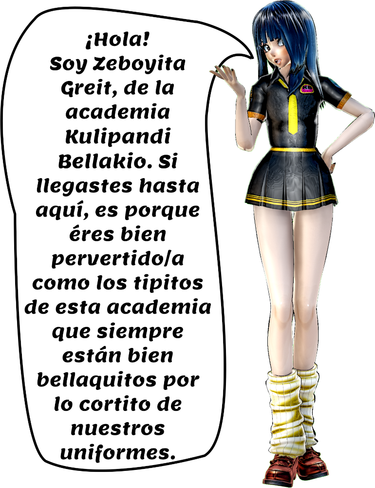 Saludos; Has accesado la cripta del arte lascivo, pervertido y obsceno de Zeboyita Greit fundamentalizado en temáticas de colegialas con elementos de perversión, lujuria y humor, en escenarios provocativos. Todo explora distracciones, curiosidades y encuentros inesperados en entornos cotidianos. Todo se crea bajo la categoría de waifu-NSFW. Las creaciones se dividen en 2 series KB (vectores) Y Scholastic (vértices) ambas series se compones de personajes OC exepto por las subcategorías Realengas que son personajes temporeros.